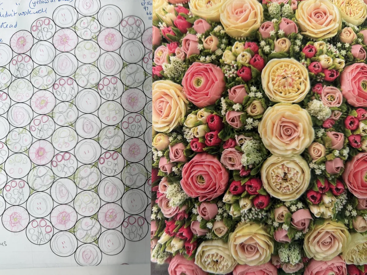 Whether you have decided on 6 different blooms or 10 different blooms, this document will show you exactly how to place your 91 cupcakes. This sheet is invaluable!