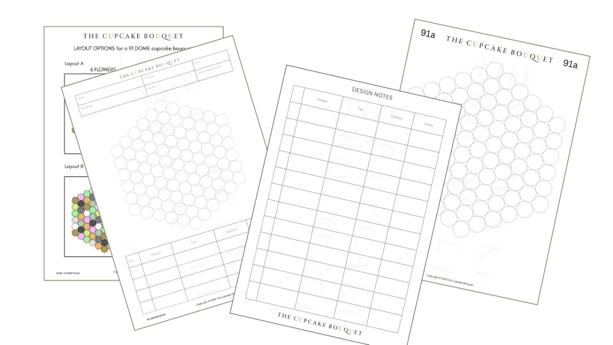 Print off this design sheet to record tips, colours, quantities, flavours, placements, date and allergens! You will use this plan when you are baking, piping AND inserting the cupcakes!