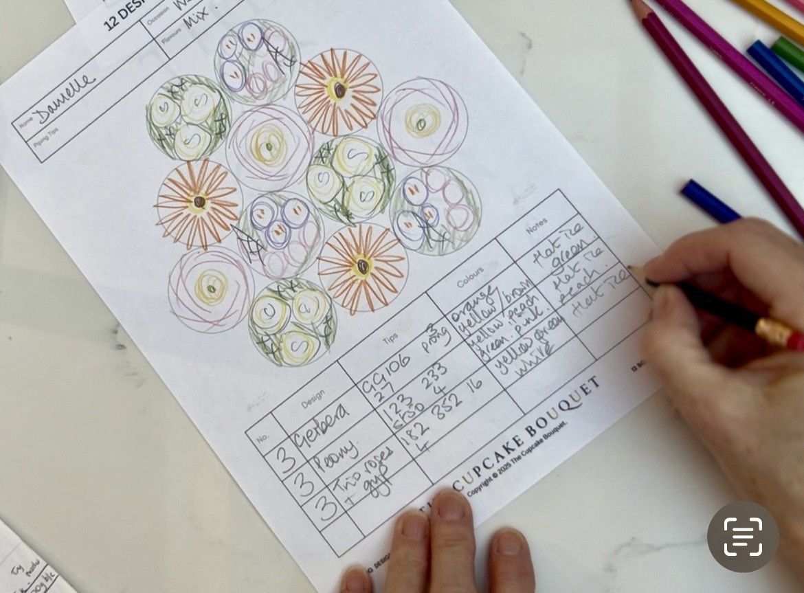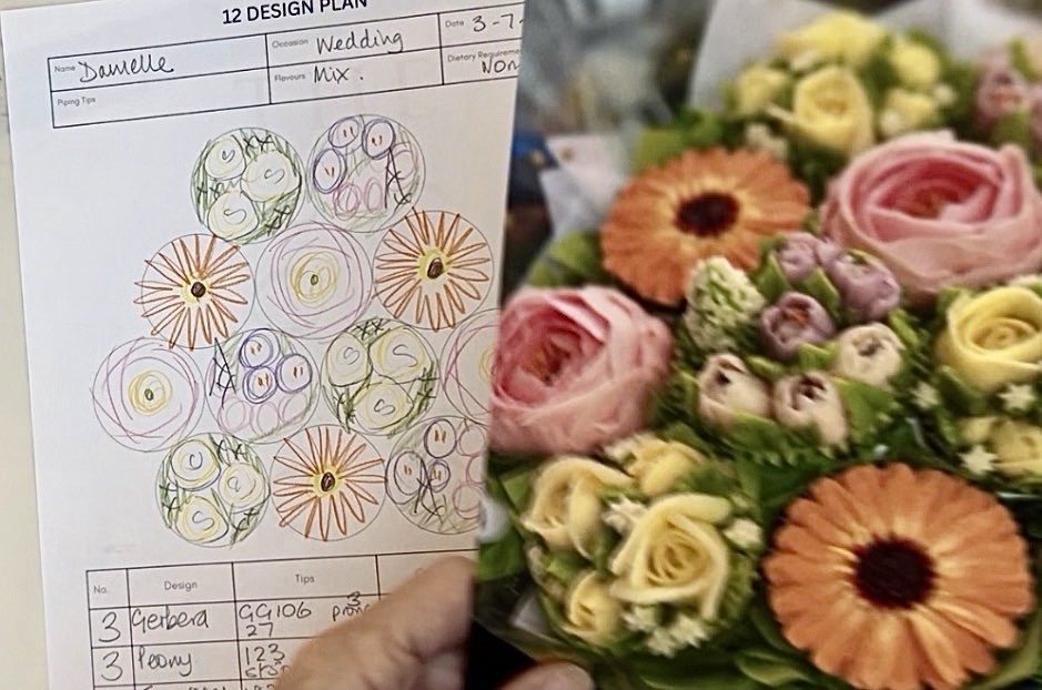 Sketch and visualise how the blooms fit together before you start piping.